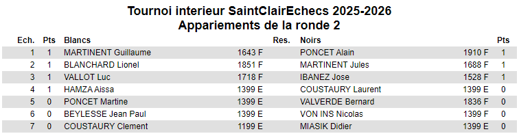 Le tournoi intérieur organisé par Guillaume Martinent a eu lieu du Mardi 12 Novembre 2024 au Mardi 3 Juin 2025.