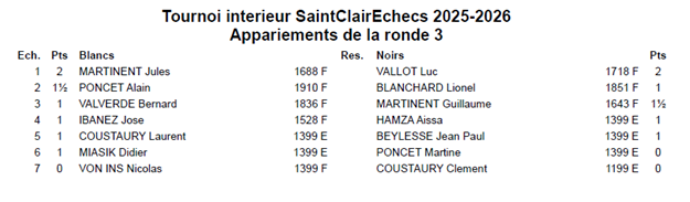 Le tournoi intérieur du club d’Echecs de St Clair du Rhône à débuté Mardi 14 Octobre