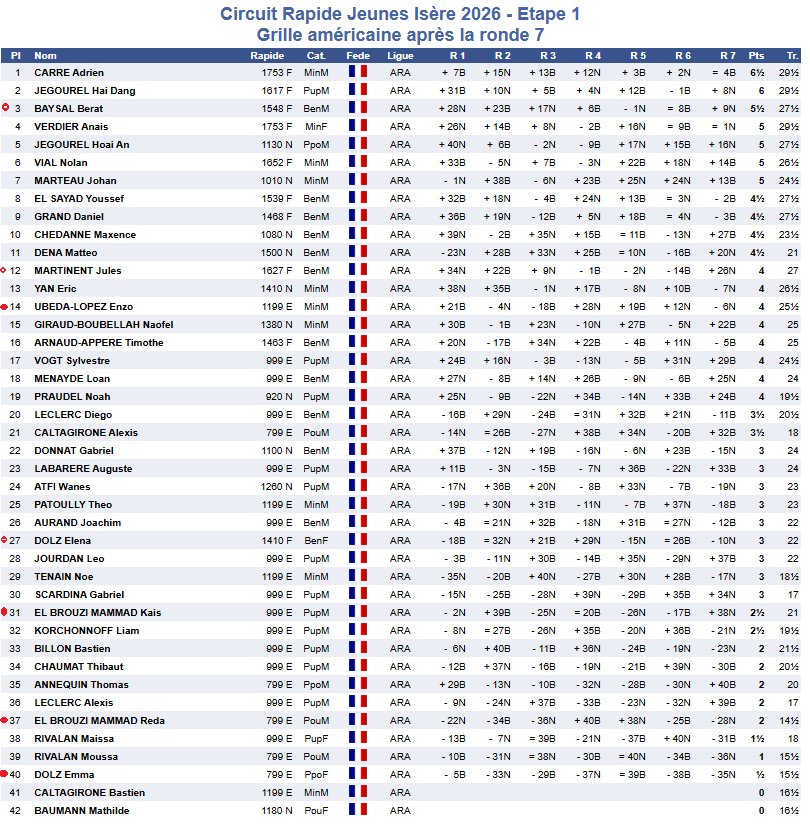 Pour cette première étape, nous avions 7 représentants qui ont eu des fortunes diverses. Avec une mention spéciale à Bérat pour une belle troisième place.