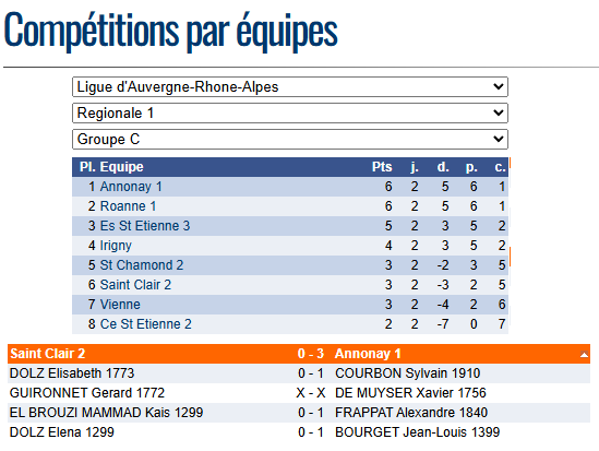 Match de l’ équipe 2 Dimanche 12 Octobre