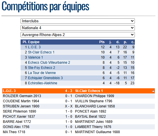 Mais après la victoire au temps de Philippe au 1er échiquier, la nulle de Lionel au troisième et la victoire de guillaume au huitième nous prenions un bon départ et menions 0-2.