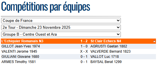 Après avoir été exempt le Dimanche 5 Octobre, l’équipe de St Clair Echecs démarrait la compétition le Dimanche 23 Novembre avec un déplacement à Romans, contre l’équipe de l’échiquier Romanais.